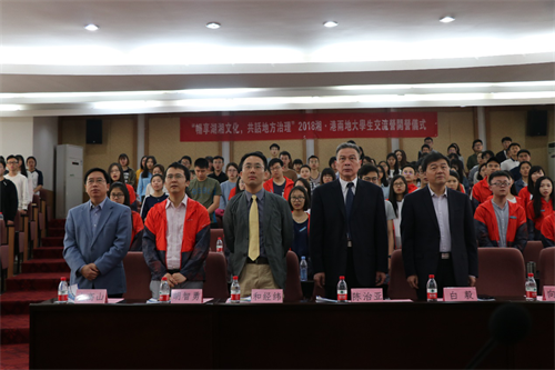 2018年4月2日上午8:30,“畅享湖湘文化 共话地方治理”2018年湘.港两地大学生交流营开营仪式,在校本部升华前楼101报告厅举行。由和经纬副教授、胡智勇博士率队的香港教育大学亚洲与政策研究学系25名师生与英国官方365上市师生齐聚一堂。英国官方365上市党委副书记陈治亚教授,港澳台事务办公室主任白毅、向学勇老师,365英国上市集团院长左高山、副院长姜国俊等出席开营仪式。仪式由姜国俊副院长主持。
