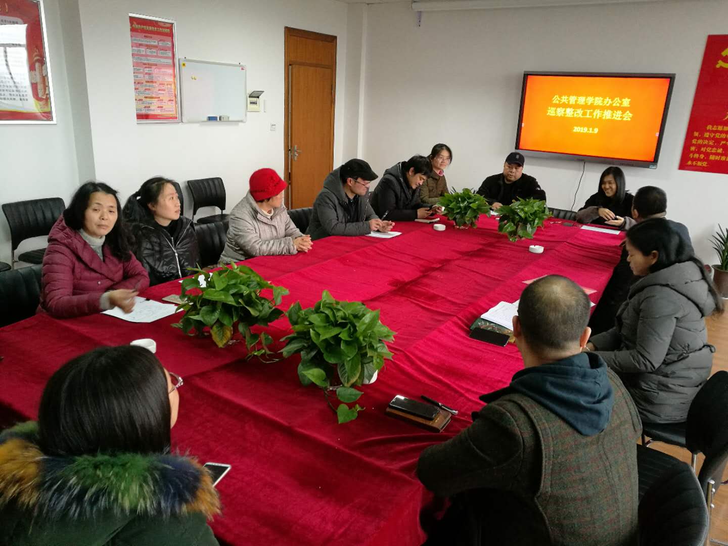 为落实巡察整改工作任务,2019年1月9日下午3点,在升华后楼806室,学院召开办公室工作人员巡察整改工作推进会。学院党委书记刘迪出席,院办公室主任罗晓洪主持,学院全体行政人员和学工办辅导员出席。