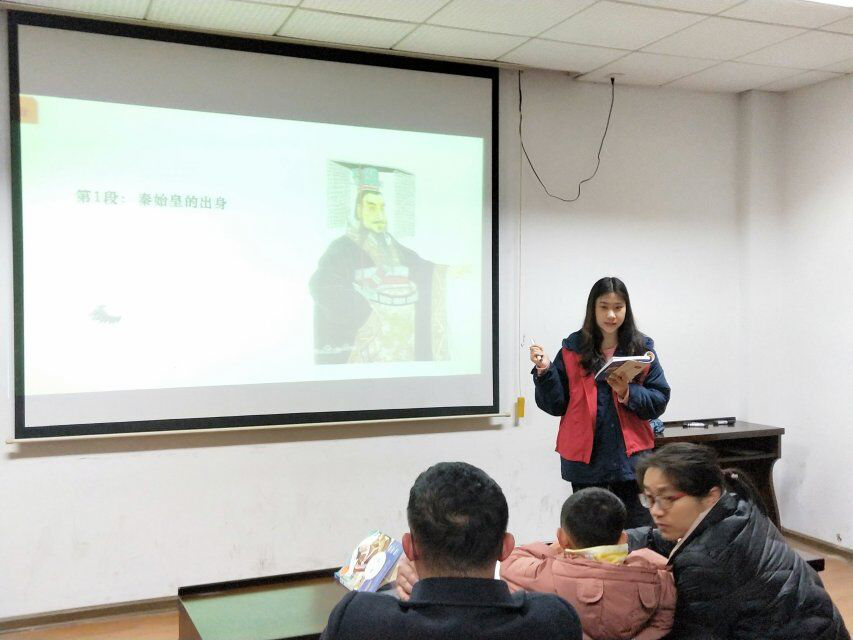 本次活动中,8位小朋友在家长的陪同下一起学习传统国学经典,由来自我院的学生志愿者为其进行知识讲解与指导。此次大讲堂共分为三节课,第一节课的内容选自《史记故事》中的《秦始皇的故事》。志愿者用生动的语言讲述了秦始皇的生平事迹,带小朋友们深入了解这位传奇人物。