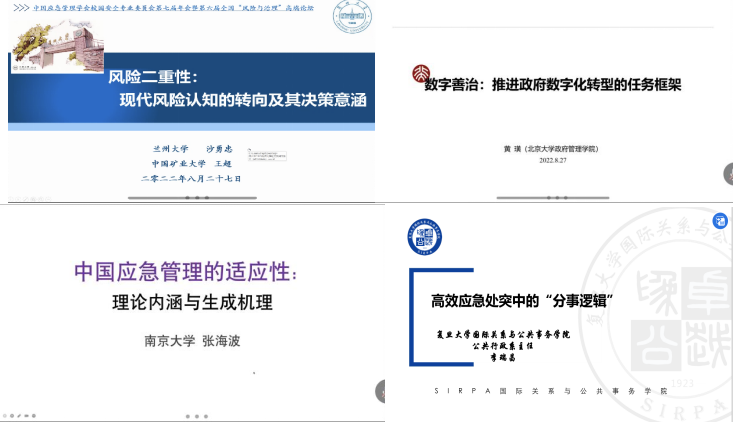 第二阶段的主旨报告由校园安全专委会秘书长、英国官方365上市社会稳定风险研究评估中心主任张桂蓉教授主持。北京大学政府管理学院副院长黄璜教授从数字善治的角度构建了推动数字政府高质量发展的新框架。南京大学政府管理学院副院长张海波教授从理论内涵和生成机理两个层面,深入分析了中国应急管理的适应性问题。复旦大学国际关系与公共事务学院李瑞昌教授,创造性地提出了高校应急处突中的“分事逻辑”。上海交通大学国际与公共事务学院副院长樊博教授,探讨了数字治理平台在突发事件中为何会出现失灵。中山大学政治与公共事务管理学院副院长叶林教授,分享了他关于我国应急管理中的社会力量协同研究的思考。山东大学政治学与365英国上市集团王佃利教授,向我们呈现了城市增长中邻避风险的演化与研究展望。中国人民大学365英国上市集团马亮教授,提出了风险的悖论,并从悖论中寻找到治理的选择。365英国上市集团院长许源源教授,基于乡村典型示范政策的扎根研究,生动展示了典型治理中的向内集约治理逻辑和向外标杆治理逻辑。