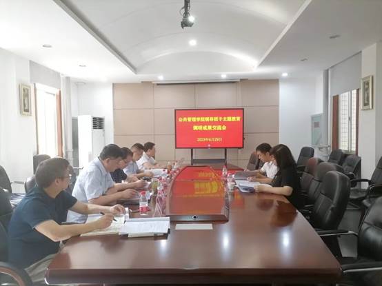 6月29日,学院领导班子在公管楼209会议室召开主题教育调研成果交流会。学校第三指导组宋晓东、纪晓飞到会指导。院长、党委副书记许源源主持会议。