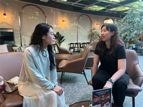 图2 带队老师万可采访天河区港澳青年之家总部代表谭家文