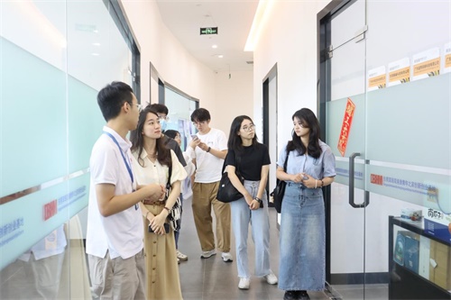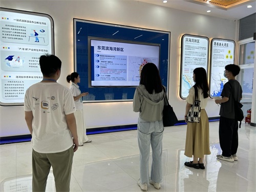 图2 东莞滨海湾港澳青年之家创新创业基地工作人员带领团队成员参观基地