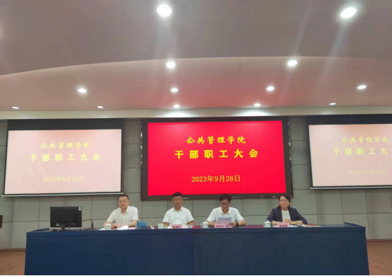 2023年9月28日上午,我院在公管楼404召开全院教职工大会。校党委副书记黄健陵,校党委组织部部长田庆华、正处级组织员赵晓霞出席会议。会议由赵晓霞主持。