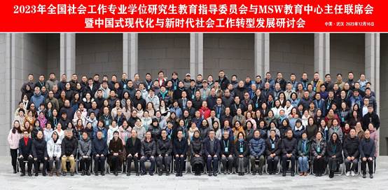 2023年12月16日至17日,由全国社会工作专业学位研究生教育指导委员会主办、华中师范大学社会学院和社会工作专业学位研究生教育中心承办的全国社会工作专业学位研究生教育指导委员会与MSW教育中心主任联席会暨中国式现代化与新时代社会工作转型发展研讨会在武汉举行。来自北京大学、清华大学等150余所高校的280余名专家学者以及相关政府部门和群团组织的领导出席,我院副院长潘泽泉教授、社会学系主任彭远春老师参会。
