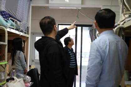 为了解学生思想学习生活近况,提高学生安全意识,5月5日下午,我院党委书记杨旭东、院长许源源、副书记耿贵斌、学工办主任徐立坤、辅导员孙立明、黄静怡一行深入铁道校区铁二舍与新三舍,走访学生宿舍,并进行安全专项检查。