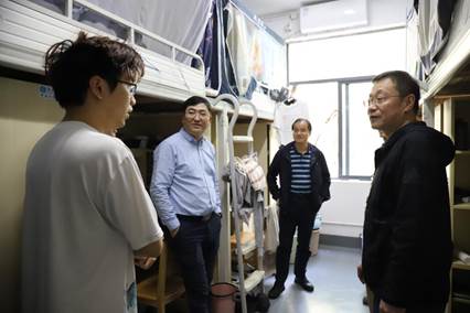 院领导与老师们来到学生宿舍后,首先与同学们亲切交流,充分了解了同学们近期的学习状态、生活情况与发展规划,提醒应届毕业生们充分做好就业准备,鼓励其他同学主动向毕业生汲取经验。接着,领导老师们嘱咐同学们提高安全意识,切勿使用违规电器,做到人走断电,消除安全隐患,并注意日常出行安全。