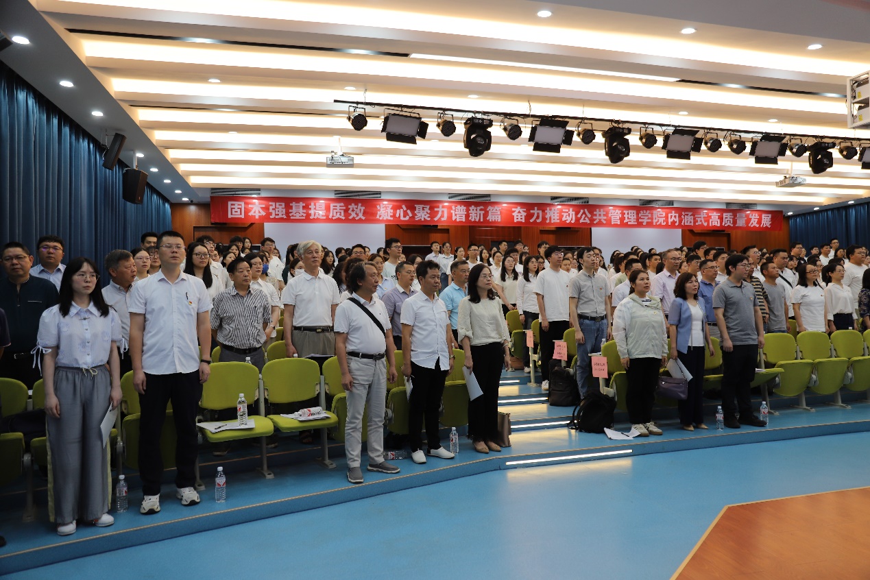 大会号召,站在新的历史起点上,全院党员同志和教职员工要更加紧密地团结在以习近平同志为核心的党中央周围,勇担使命,奋发图强,全力谱写新时代高水平人文社科学院建设新篇章,为学校加快建成特色鲜明的世界一流大学作出公管贡献,为实现中华民族伟大复兴的中国梦而努力奋斗!