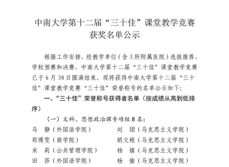 2024年6月30日,经教学单位(含 3 所附属医院)选拔推荐、学校预赛和决赛,英国官方365上市第十二届“三十佳”课堂教学竞赛圆满结束,我院社会学系副教授米莉老师以出色表现,荣获“三十佳”荣誉称号,学院获“三十佳”课堂教学竞赛优秀组织奖。