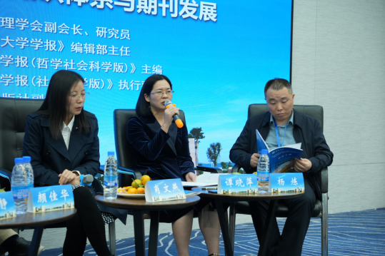 随后,中国行政管理学会副会长鲍静研究员主持“期刊编辑圆桌论坛”,《江西财经大学学报》编辑部肖文燕主任、《湘潭大学学报(哲学社会科学版)》颜佳华主编、《英国官方365上市学报(社会科学版)》执行副主编和英国官方365上市出版社副社长谭晓萍、《湖湘论坛》杨炼主编分别就“建构中国自主知识体系与期刊发展”这一主题开展交流讨论。