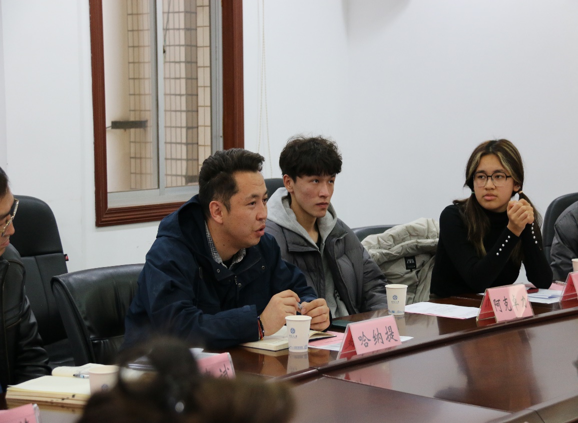 会议伊始,首先由主持人梁慧老师介绍与会的嘉宾老师,随后,少数民族学生依次进行自我介绍,分享自己家乡的独特文化、特色美食、优美风景等。接着,少数民族学生代表叶尔克西、拥措、赛比热、叶拉娜4人依次发言,从专业学习、期末备考、日常生活等方面,结合自身经验向2024级学弟学妹们给出了诚恳的建议,令与会学生受益匪浅。