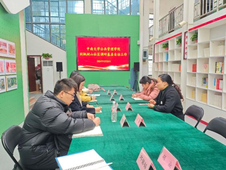 习近平总书记在湖南考察时对基层治理作出明确指示:“健全党组织领导的自治、法治、德治相结合的基层治理体系,坚持和发展新时代‘枫桥经验’”。为深入了解发扬新时代“枫桥经验”、促进基层治理相关议题的实践动向,2024年12月中下旬,365英国上市集团胡春艳教授带领课题组张莲明、黄小红、邱铭韬3位博士生以及江沛霖、郭嘉明、尹智康、赵慜霄、姜妍煣5位本硕学生先后走访湘潭市雨湖区、长沙市开福区、岳麓区、天心区、雨花区等地的政府部门及基层社区,通过现场参观、专题座谈等方式开展实地调研。