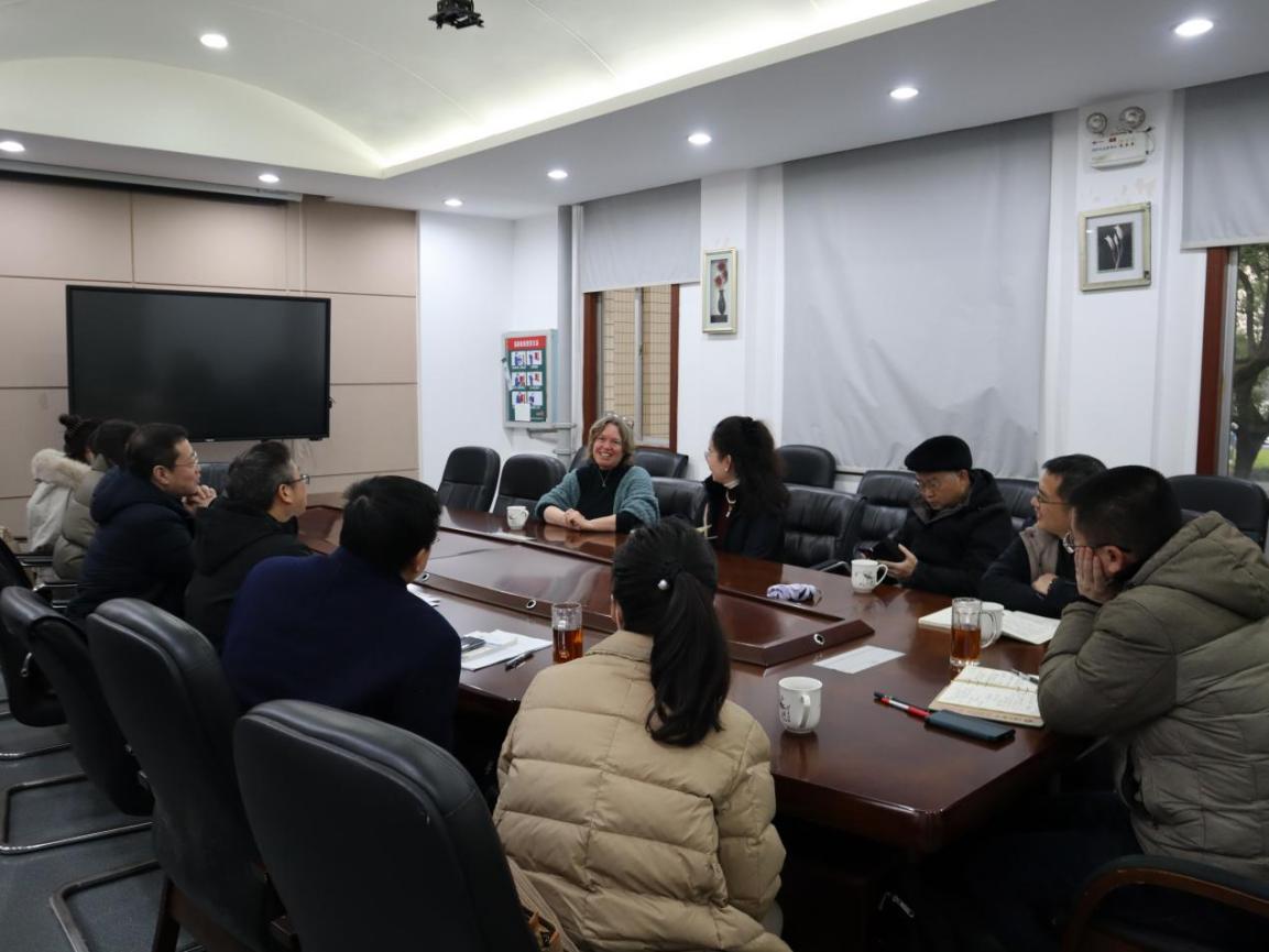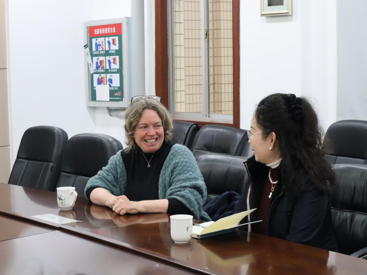 瑞雪·墨菲教授对此进行积极回应,表示愿意与我院建立稳定的国际合作交流关系,并继续探讨切实可行的实施方案。随后,与会人员围绕学院基本情况、教师队伍建设、学生培养方案、国际人才交流、学术研究与合作、学科建设和专业发展等多个方面展开深入讨论。