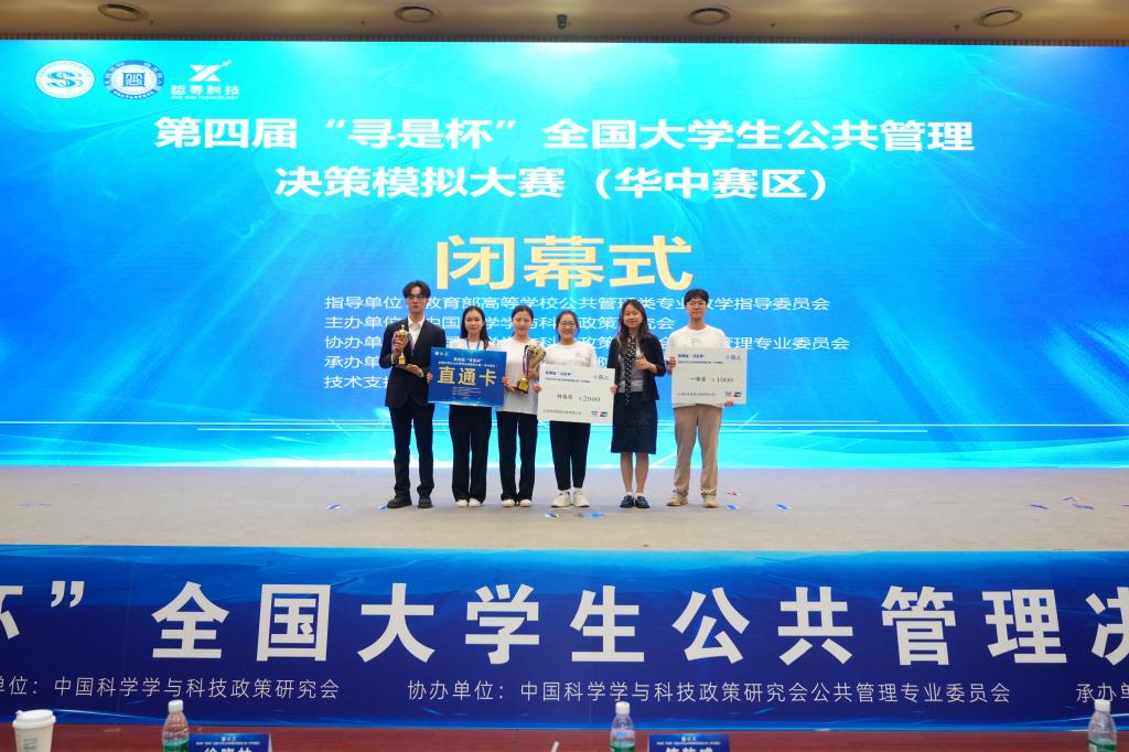本次大赛包括公共管理方案设计、决策演练沙盘对抗与团队答辩三部分,现场队员们团结协作,保持专注,全身心投入到紧张有序的比赛中。通过激烈角逐,12支团队晋级现场答辩环节。最终,7支团队获得特等奖、20支团队获得一等奖、28支团队获得二等奖、3支团队分别获得最佳公共管理方案奖、最佳公共管理决策模拟奖和最佳团队奖。我院组建了两支由欧阳万福和刘媛为指导老师的团队参赛,其中李欣芮、何婷紫和李廷洋组成的团队斩获特等奖、最佳公共管理决策模拟奖、最佳公共管理方案奖和最佳团队奖;李瞿皓曦、喻胤杰和康可笛组成的团队斩获一等奖。