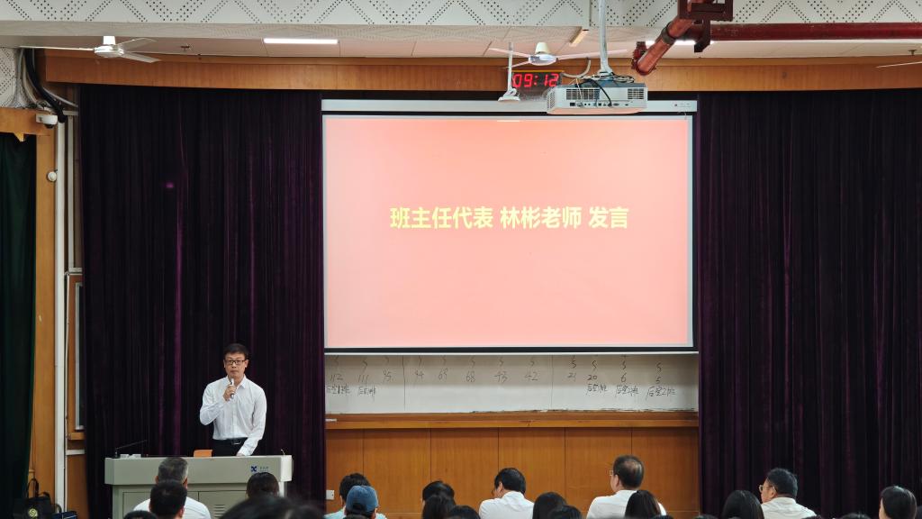 教师代表即2025级集中班班主任林彬老师从对于学科要有认识和理解、对于学科的学习要有热情、珍惜同窗情谊三个方面与大家进行了交流,希望大家珍惜时光,以学习之能扩宽大家观察世界之视角,提升解决问题之能力。