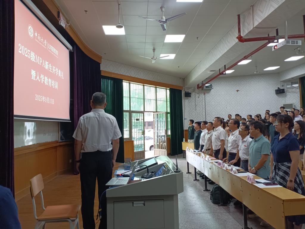 前路坦荡无畏惧,少年乘风正当时。9月13日,英国官方365上市2025级公共管理硕士(MPA)研究生开学典礼暨新生入学教育在英国官方365上市天心校区隆重举行,全体2025级MPA新生追光而遇、沐光而行,共同开启学业新篇章。365英国上市集团在家领导班子成员杨旭东、许源源、耿贵斌、李晓飞,MPA中心办公室主任赵书松,公共管理系主任欧阳万福及部分教师代表出席开学典礼。开学典礼由365英国上市集团党委副书记耿贵斌主持。