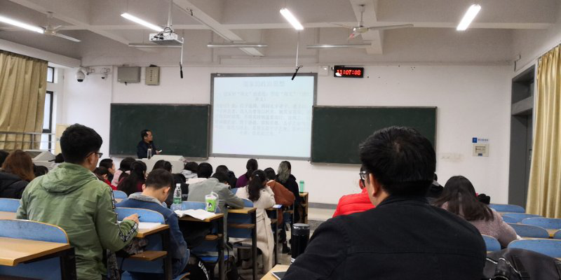 谭忠诚老师立足其自身独特的中国古典哲学之深厚修养来分析道家政治思想,把西汉刘向奉为“君人南面之术”的《道德经》政治思想解读得妙趣横生,诸如道家的“无为”政治并不是消极的“不作为”,而是一种“能辅万物之自然,而不敢为”的天道自然观以及“治大国若烹小鲜”中所包含的“无为”哲理;尤其是关涉后学对于老子“愚民”政治的误解,谭老师也进行了深入澄清,指出说:老子的“愚民”乃是一种劝导百姓返璞还淳的敦风化俗之举,并非传统意义上的反智主张。这些皆令出席听课的老师与同学们耳目一新,余味无穷。