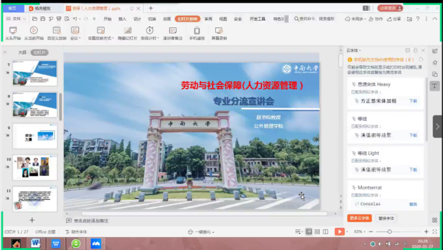 之后,劳动与社会保障专业赵书松教授从专业简介、师资力量、培养特色、毕业发展、奖励荣誉和学术训练等方面,对劳动与社会保障专业进行了介绍。我院劳保专业开设于2013年,在短短几年的发展中取得了巨大的进步,目前专业排名位于全国第六,专业虽年轻但发展前景广阔,充满活力和朝气,正在稳步向着更成熟和更具特色的方向发展。本专业不仅有一支结构合理、特色鲜明、力量雄厚的师资队伍,而且还建设了一个可以提供劳动谈判、人力资源案例分析和社会保障实验的综合实验室,专业更是将双导师制的影响发挥到了极致,小班式教学为满足学生的各项发展需求提供了个性化培养。劳保专业优秀学生代表赵莉娜发言,她介绍了本科四年在专业里收获的学术知识、专项训练、丰富经历和宝贵情感体验,帮助同学们从更多的视角去了解专业特色。同时,她也鼓励同学们根据自己的发展和兴趣来选择专业,并努力向着更好的目标迈进。