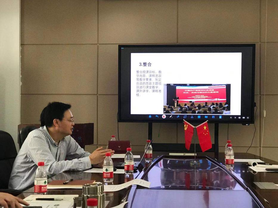 接着,学院院长许源源对课程思政工作建设和下一步工作计划进行了补充说明。他指出,各专任教师,要花时间和精力,充分挖掘各课程与思政元素的结合点,归纳、总结和提炼出一套行之有效的方法,将课程思政建设上升到“方法论”的层次。下一步,我院将全方位推进课程思政工作,利用我院课程的特点,突出“课外课堂”的作用,将课程思政建设与课外实践、社会主义核心价值观和中华传统文化结合,使课程思政工作开花结果。