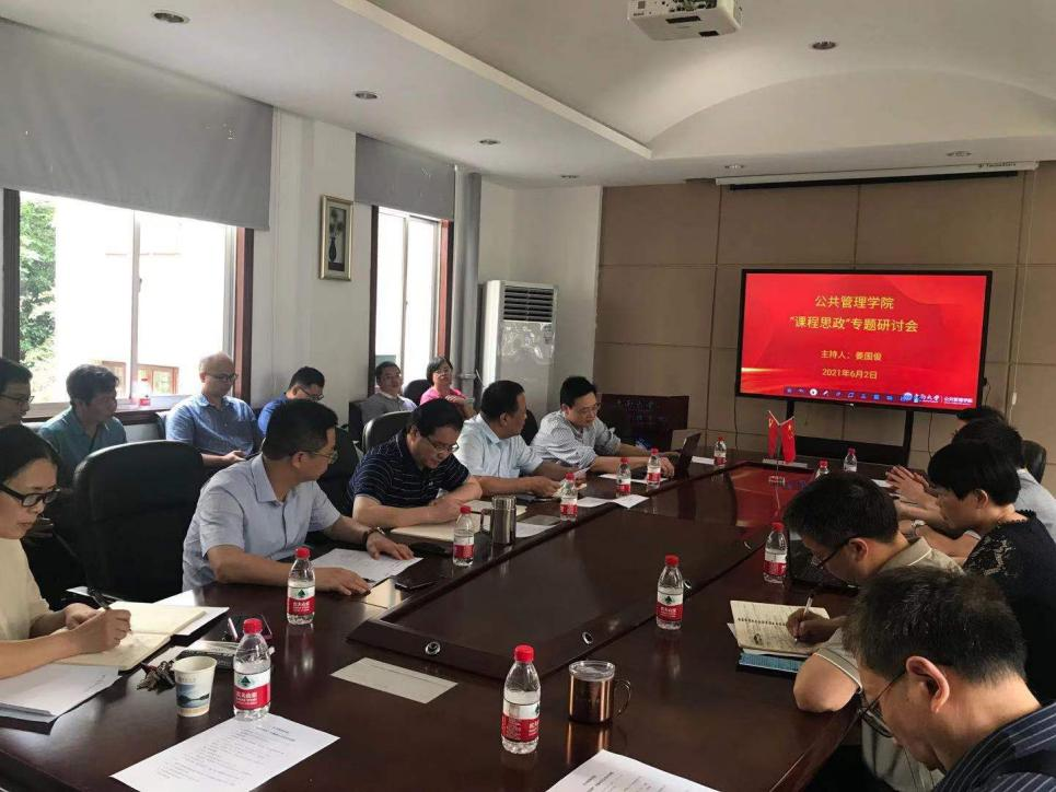 为全面落实立德树人根本任务,构建全员全程全方位育人大格局,充分发挥课堂教学主渠道在高校思想政治工作中的作用,公共管理学院于6月2日下午3:00,在院209会议室召开“课程思政建设研究项目”专题研讨会。学校督导谭希培、杨国忠教授,本科生院聂晓霞老师,学院党委书记刘迪、院长许源源、副院长董海军,学院系所主任与副主任、学院教学委员会成员和教师代表共计20多人参与研讨,会议由姜国俊副院长主持。