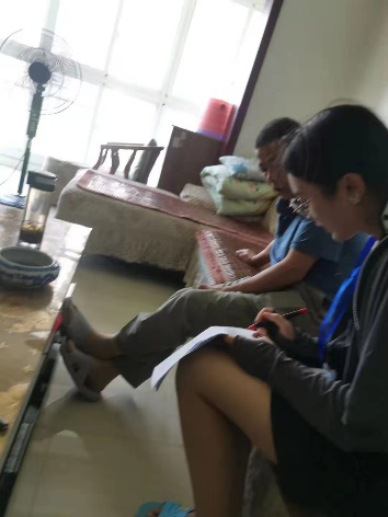 出发前,同学们相互之间提醒要带的物品,并约好集合的时间和地点,提前做好当天两两一组的分队工作,同时确定了当日所要完成的问卷目标数。到达社区后,各分小队依次进入不同的楼栋单元,对居民进行问卷调查。敲门——询问——访谈——记录,从瞻前顾后不敢行动到不断改善愈加熟练,每位同学逐渐结合实际,形成了建立信任、有效沟通与顺利访问的技巧与策略。在烈日下相互支持,在拒访中相互安慰。正是这艰辛的过程使得取得的成果更加弥足珍贵。