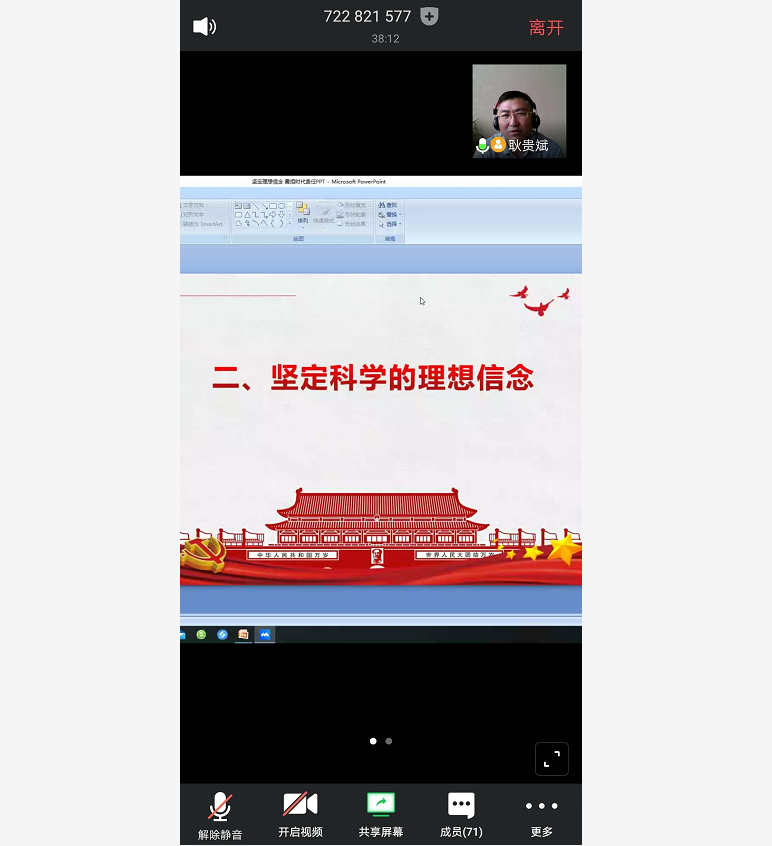 首先,耿书记对于毕业生党员们在校期间所取得的成绩表示赞扬与肯定,同时也鼓励各位党员同志们在毕业后的生活中能够继续保持虚心好学的态度,将“仰不愧天、俯不怍人”的院训牢牢记在心中。接着,耿书记为全体毕业生党员带来了一场主题为“坚定理想信念,勇担时代重任——从抗击病毒疫情说起”的党课。党课紧扣时事热点,内容详实、极富感染力,从“新时代青年是抗疫主力军”、“坚定科学的理想信念”、“脚踏实地走好人生路”三个方面展开,让参会的每一位毕业生党员同志都受益匪浅。