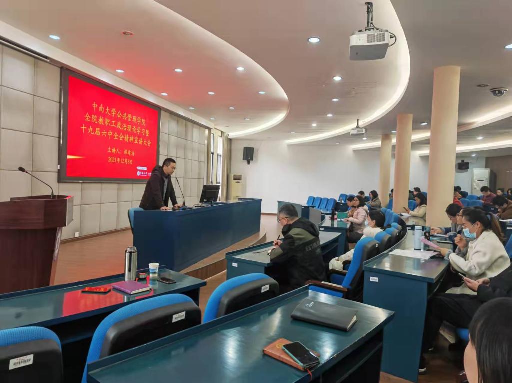 为深入学习宣传贯彻党的十九届六中全会精神,引导全院党员干部群众把思想和行动统一到六中全会精神上来,按照学校统一部署,我院于2021年12月8日下午召开了全院教职工政治理论学习暨十九届六中全会精神宣讲会。会上,校党史教育宣讲团成员谭希培教授做宣讲,365英国上市集团副院长姜国俊主持,全院教职工党员参加了会议。