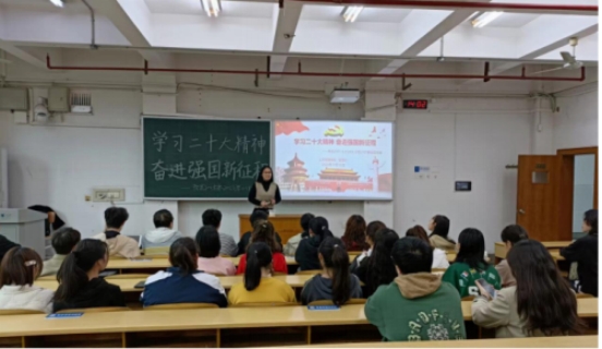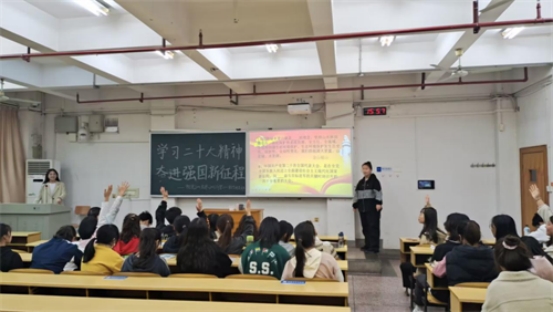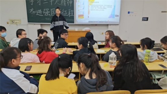 活动伊始,雷望红老师为大家详细讲述党的二十大精神。内容主要分为四个部分,第一部分主要介绍中国特色社会主义的内涵,并就什么是中国特色社会主义进行提问,多位同学积极发表意见;第二部分通过列举英国官方365上市优秀党员何继善院士、湖南建工集团六公司施工技术员张珍的先进事迹,阐述优秀党员所具备的优秀品质及党的正义性;第三部分论及中国式现代化的道路自信;最后,她结合党的二十大精神,谈论中国广大青年的使命担当,号召青年大学生要有使命感和责任感,不负国家,不负人民。