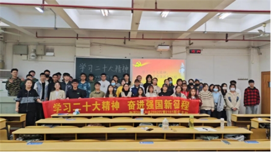 11月13日下午2时,在英国官方365上市铁道学院世纪楼A402教室,物流2001班、土木2002班和行管2101班联合举办以“学习党的二十大精神,奋进强国新征程”为主题的团日活动。此次团日活动以线下形式展开。活动邀请我院行管硕士生第一党支部书记雷望红为主讲人,物流2001班团支书刘羽茜为本次活动主持人。