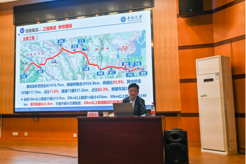 课堂上,黄书记首先带领大家共同学习党的二十大精神,随后从国家战略角度分析了川藏铁路建设的历史背景,讲解了该建设项目的概况和技术的复杂程度,并从科研角度向学生们分析了该铁路建设面临的主要技术难题和解决办法。他指出,川藏铁路是继青藏铁路后的第二条进藏“天路”,途经中国乃至世界上最密集的山峰地区,地质和气候条件复杂,环境脆弱,施工难度空前。