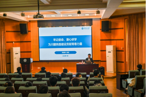 为进一步学习贯彻党的二十大精神,充分调动广大学生骨干的积极性、主动性与创造性,2022年11月25日下午3点,“牢记使命,潜心研学——为川藏铁路建设贡献青春力量”思政课在铁道校区世纪楼C201报告厅召开。此次思政课由校党委副书记黄健陵教授讲授,交通院党委副书记宋晓东主持,公管院党委副书记耿贵斌、副院长姜国俊,交通院党委副书记宋晓东、学生办公室主任樊桂俊,以及公管院、交通院两院学生140余人参加。