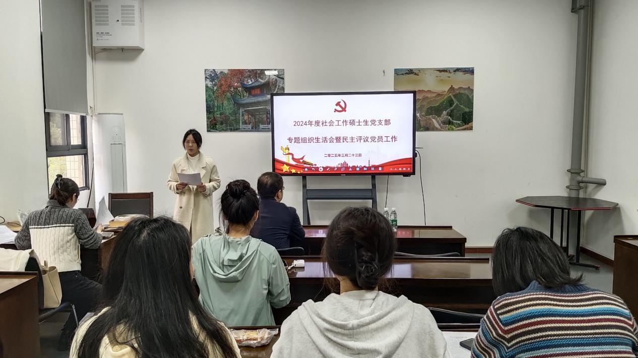 3月23日,社会工作硕士生党支部在学院405会议室召开2024年度组织生活会暨民主评议会。会议由支部组织委员李姝主持,学院党委书记杨旭东到会指导,全体党员参会。