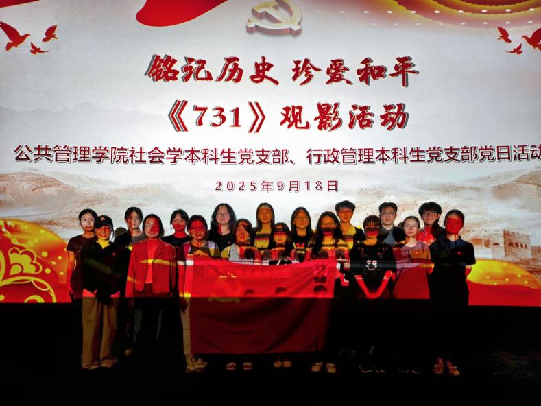 为深入贯彻落实习近平总书记关于铭记历史、缅怀先烈的重要指示精神,强化党员理想信念教育,传承红色基因,9月18日晚7时,学院社会学本科生党支部、行政管理本科生党支部组织19名党员一同前往影院开展《731》观影主题党日活动,回顾抗战历史,筑牢信仰根基。