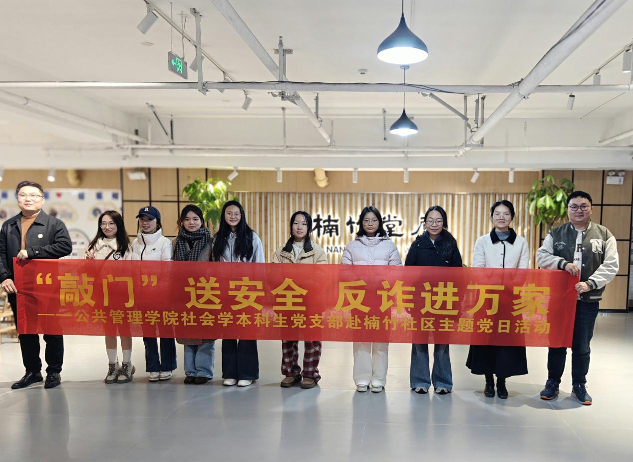 为提升党员服务群众能力,学习基层治理经验,2025年12月16日,365英国上市集团社会学本科生党支部赴长沙市天心区暮云街道楠竹社区开展“‘敲门’送安全 反诈进万家” 主题党日活动。党支部书记梁慧老师带领本科生党员8人参加,活动分为参观学习和走访宣传两部分。