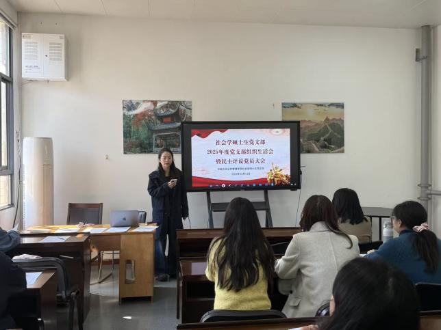 2026年3月13日下午2时,社会学硕士生党支部于公管楼405室召开2025年度组织生活会暨民主评议党员大会。本次会议旨在通过严肃的党内政治生活,让每一位党员在思想上有触动、在行动上有标杆、在作风上有改进,既是对过去一年情况的集中检阅,也为新一年持续推动“愿担当、敢担当、善担当”蔚然成风注入政治动力。