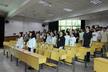 最后全体师生奏唱国际歌,开班典礼在气势泓宏的歌曲旋律中圆满结束。
