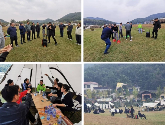 天朗气清,惠风和畅,郊外的露营基地山清水秀,空气清新,行政小组仿佛身处长沙版“阿勒泰”,开启了一场放飞心灵之旅。在团建主持人的号召下,行政小组成员分两队站立集合,开始了丰富多彩的“脑力+体力”团建之旅,进行了“猜拳大脚跑”“闭眼挥棒打”“赶鸭子来回跑”等趣味游戏大比拼,大家纷纷各显身手,在游戏中展现了积极向上、团结协作的精神风貌。老师们在趣味游戏之后,有的准备音响设备,一展歌喉,尽情释放工作和生活的压力;有的进行“狼人杀”桌游,在真相与谎言的碰撞中感受推理的魅力;有的组队扔飞盘,进行了一场体力与技巧的比拼;有的在旷野中放风筝,放飞深秋的梦想;有的一展厨艺,为大家奉献一场烧烤盛宴,为活动增添了一份烟火气息。