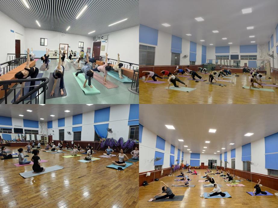 师生瑜伽兴趣小组每周固定开展两次课程,分别是每周二晚7:30、周日晚7:00,在天心校区体育馆体操房上课。瑜伽课专业指导教师张惊分老师带领学员从基础呼吸法、山式站姿入门,逐步提升至高位后拉及平衡体式训练,辅以学生助教全程动作指导,确保练习科学安全。