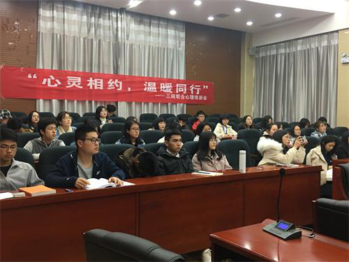 2019年4月3日下午3点,我院和法学院、马院三院联合心理委员培训会于南校区文法楼123教室成功举行。此次培训会由校心理健康教育中心熊燕老师主讲,我院心理专干梁慧老师、法学院心理专干向鑫老师和马院心理专干邹秉虹老师,以及三个学院16级、17级、18级各班心理委员参加培训。