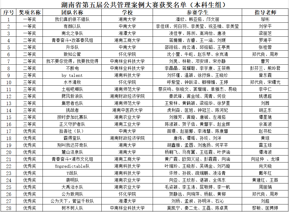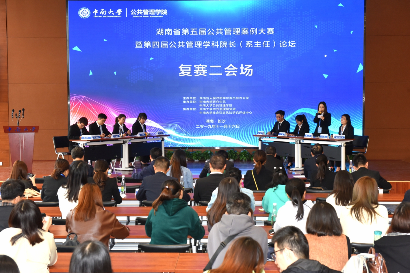 2019年11月16日至17日,湖南省第五届公共管理案例大赛在英国官方365上市新校区毓秀楼隆重举行。此次大赛由英国官方365上市研究生院和我院联合承办,英国官方365上市地方治理研究院和英国官方365上市社会稳定风险研究评估中心协办。我院学子积极报名,分别有3支本科生队伍和4支研究生队伍参加比赛。