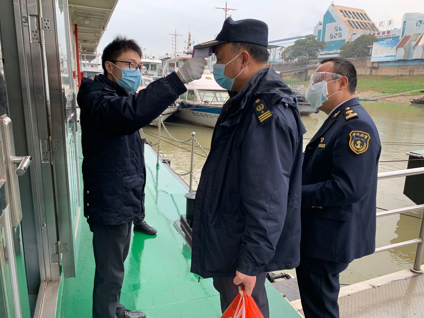外防输入,内防扩散。刘乐频每天上班的第一件事就是给自己量体温、为同事量体温,然后,用酒精或84消毒液为办公室、政务大厅等公共场所消毒。同事们都戏称他现在是“勤务兵”,但正是这个清洁工默默在保护着海事职工的安全。近期,港行企业陆续进入复工复产阶段,他每天都会耐心的解答船员问题,对准备上船的外地船员进行量体温、检查相关健康证明证件、做好登记,然后联系百盛、江南物流等公司,通过专门交通船将船员送到船舶,确保每一位船员身体健康,防止病毒输入到长江干线。