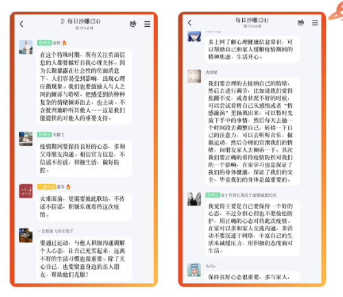 班会伊始,班导师彭远春老师针对疫情期间的心理问题和做好新学期工作,提出了总结建议和工作安排,由心理委员代为向同学们传达。接着,班会进入“情绪放大镜”环节,这一环节由“小明的疫情日记”引入,以日常生活中可能出现的情节,引起同学们对疫情心理问题的关注,对疫情心理问题为何产生、有何表现等进行科普,引导同学们通过做一份简单的问卷来判断自己大致的心理状况。随后,进入“情绪漂流瓶”环节,团支书组织同学们结成搭档,互相交流自己在疫情期间的生活状态,是否出现一些不良情绪和心理问题,以及遇到了哪些困难和烦恼。然后,进入“情绪智囊团”环节,同学们分别谈论了自己的心理问题,并给出对方自认为有效的建议;之后,团支书为大家科普心理卫生专家对疫情期间心理问题的专业建议,介绍了英国官方365上市为缓解疫情期间师生心理压力所采取的各项举措。班会最后,同学们进行感想交流,大家畅所欲言,分享和交流参与本次心理班会的感想,尝试从社会学的角度看待此次疫情,以专业思维分析疫情出现的心理问题。
