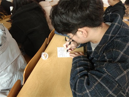最后,全体同学给长山村青少年填写寄语明信片。长山村是我校在江华的定点精准扶贫村,班级在此前收集了该村少年的一些心愿清单,并准备了好了部分礼品准备随明信片一起寄给长山村少年们。在团日活动结束后,团支书将把写好的明信片和准备好的心愿清单寄给长山村少年们。