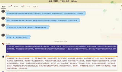 11月12日-11月14日下午3时,本科生各班组织团干部进行了集中学习和研讨,并提交了研讨现场图片和学习心得。不少团干部表示,学习了本次会议精神后,自己更深刻地了解到青年学子应当树立健康向上、担当作为的精神风貌,体会到了班级工作对青年思想引领的重要性,更好地明确了自己的责任与担当。