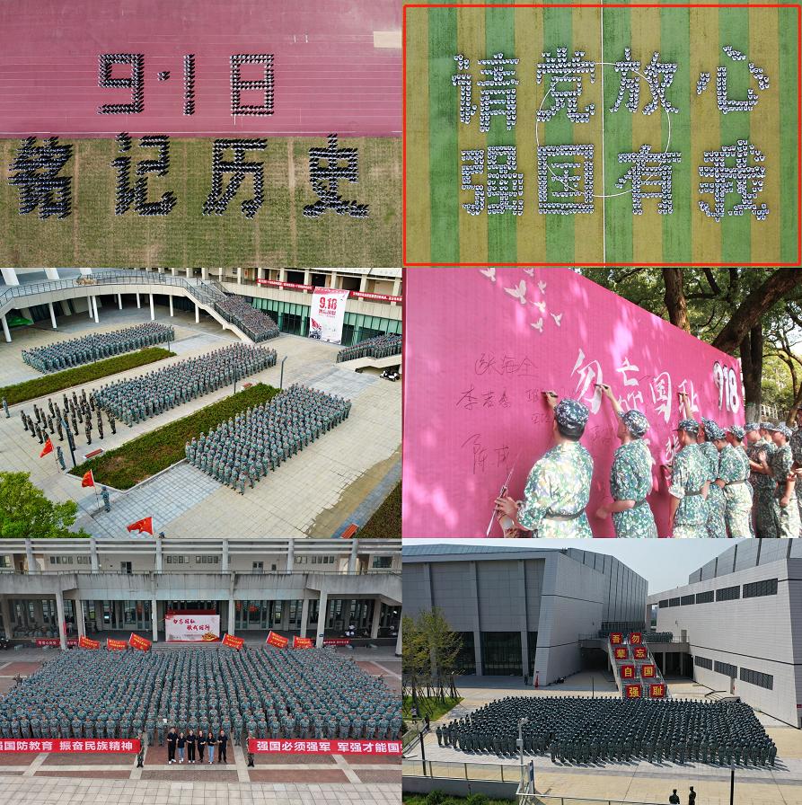 8000名中南学子,在新校体育馆、体育场、南校操场,同时展开多项纪念活动。学生们摆出“9.18”、“ 铭记历史”、“奋勇前进”、“勿忘国耻,吾辈自强”等图案;合唱《我的中国心》;齐声誓言——“请党放心,强国有我!”、“勿忘国耻,振兴中华,铭记历史,奋勇前进”。
