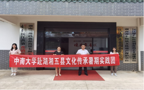 图为团队成员在沅江麻香糕传统技艺非遗体验馆与億昌麻香糕公司周宏总经理以及沅江市文旅局游立斌局长合影