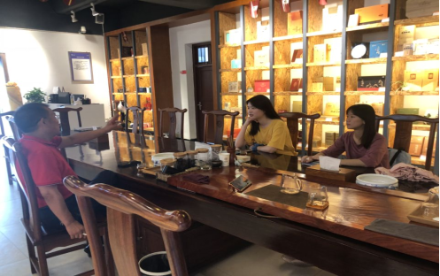 图为团队成员采访中茶茶厂陶优瑞副总经理