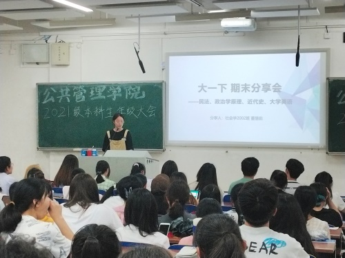 6月12日下午3时30分,在新校区A座101教室,学院召开2021级本科生年级大会。学院2021级本科生辅导员梁慧主持本次大会,学院优秀学生代表行管1901班穆梦慧,哲学2001班陆喆,社会学2002班董慧茹,学院2021级全体本科生参会。