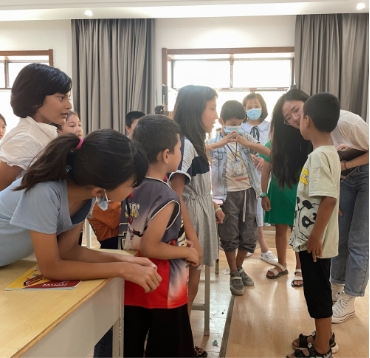 在创业路社区,支教成员教授了一小时成语,并带领孩子们进行成语接龙,还组织大家参与“你画我猜”小游戏活跃气氛。随后,成员们一一辅导了不同年级孩子们完成暑假作业,帮助部分基础知识掌握较差的同学查漏补缺。
