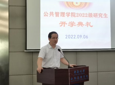 最后,院长许源源发表讲话2022级新生提出四点建议:一是注重理论熏陶,理论熏陶是走向未来的重要一步,而阅读又是增加理论储备的重要方式,读万卷书,行万里路,每位同学应该制定好读书计划,不断夯实理论基础。二是注重能力的培养,在读书期间要能够更好的了解中国治理实践,要充分运用学校提供的学习资源,广泛参与社会调研,不断提升自身的实践能力。三是注重提升写作水平,多写多练,努力克服写作困难,制定写作计划,将所见所闻、所思所想都记录下来四是注意身心健康,加强体育锻炼,广泛参与各种活动,保持师生联系,多与老师和同学沟通交流。